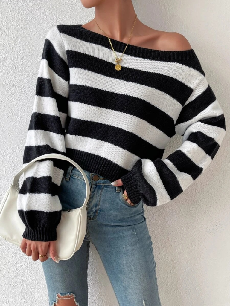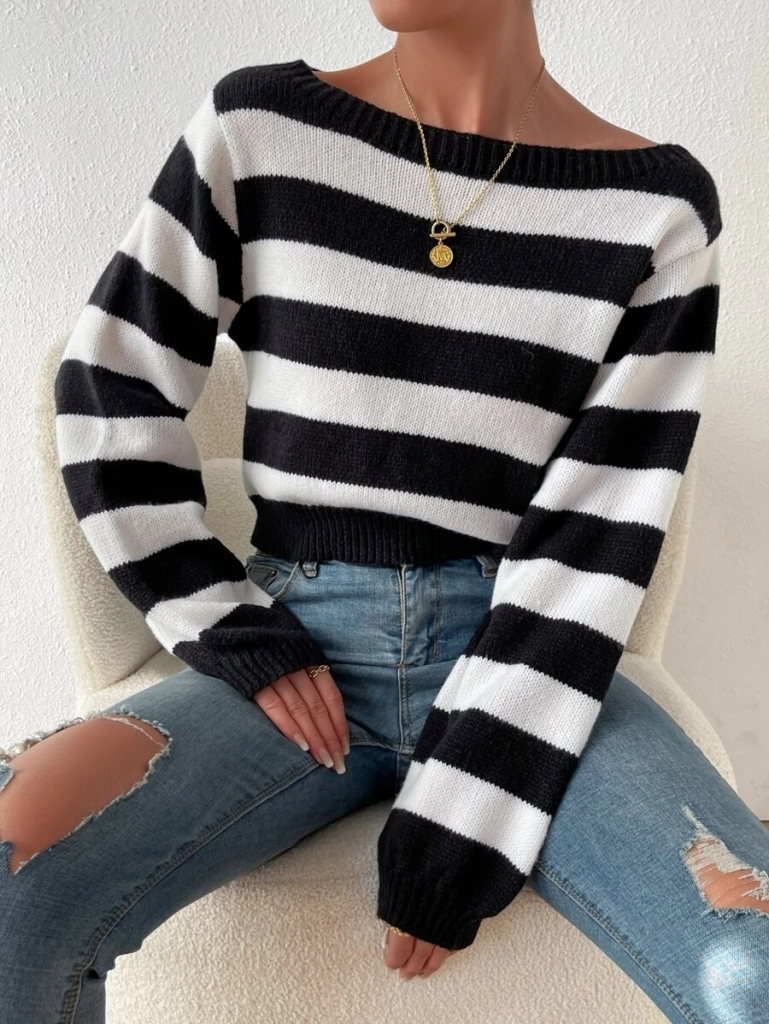 Kadın Uzun Kollu Kayık Yaka Triko Bluz