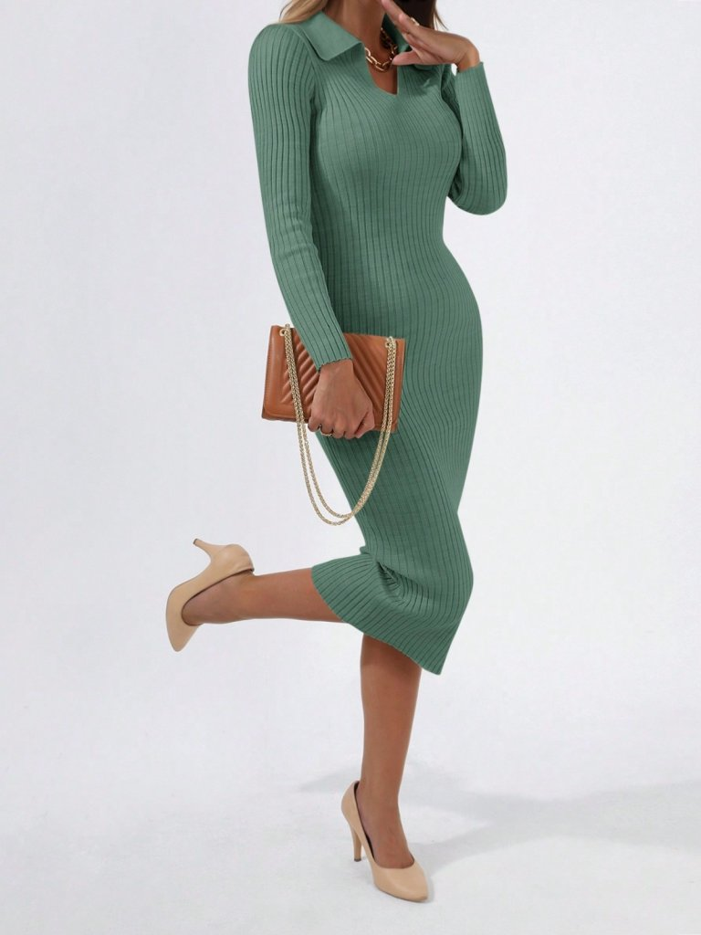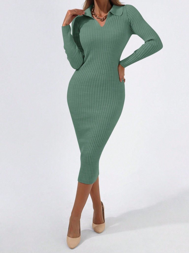 Kadın Uzun Kollu Yakalı Triko Elbise