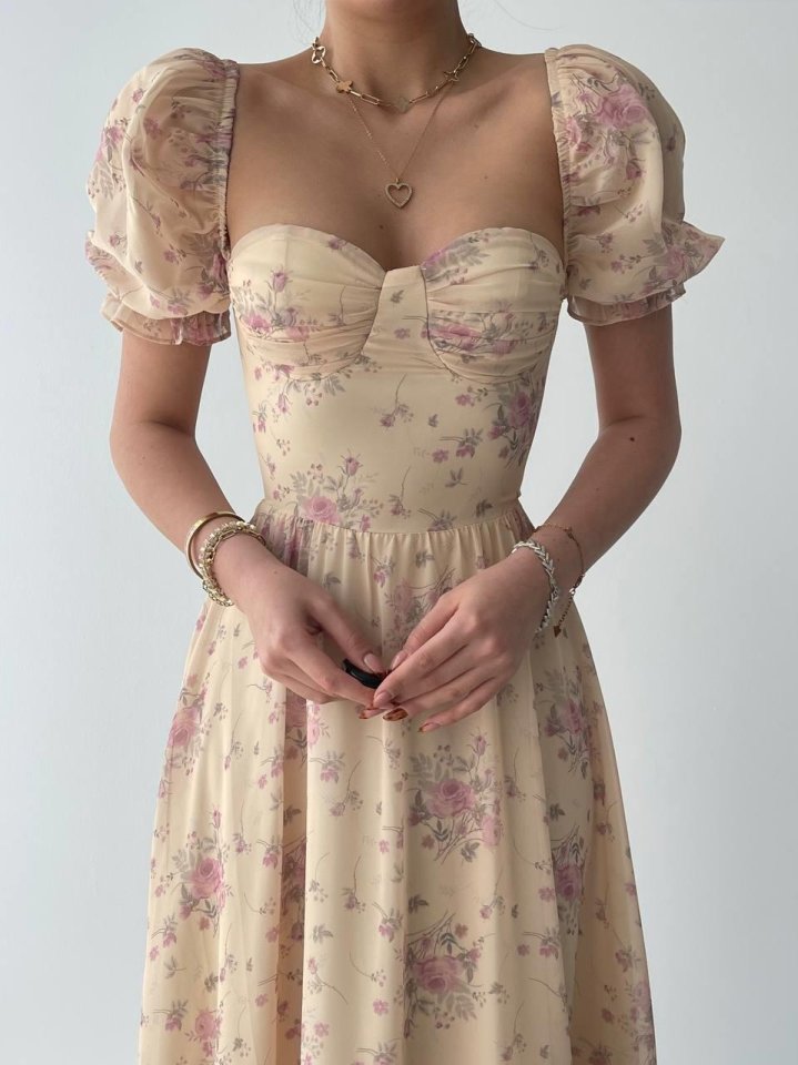 ŞİFON KUMAŞ DİJİTAL DESEN BASKILI ELBİSE